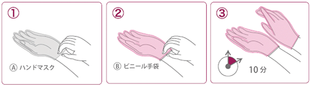 - 衛生上、一度使用したハンドマスクの繰り返しの利用はお避けください。